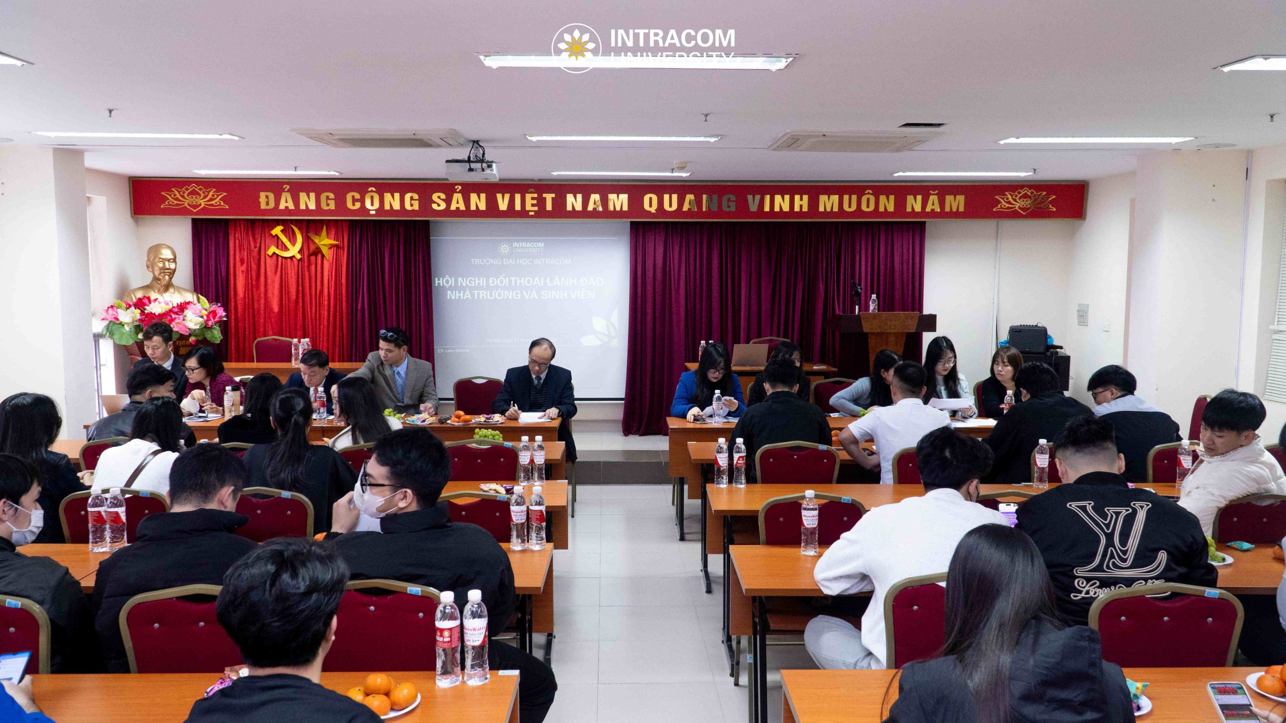 Sáng ngày 21/01/2026, tại Phòng 802, Tầng 8, Trường Đào tạo Cán bộ Thanh tra, Hà Nội, Trường Đại học Intracom đã long trọng tổ chức Hội nghị đối thoại giữa sinh viên chính quy với Lãnh đạo Nhà trường năm học 2025 – 2026.