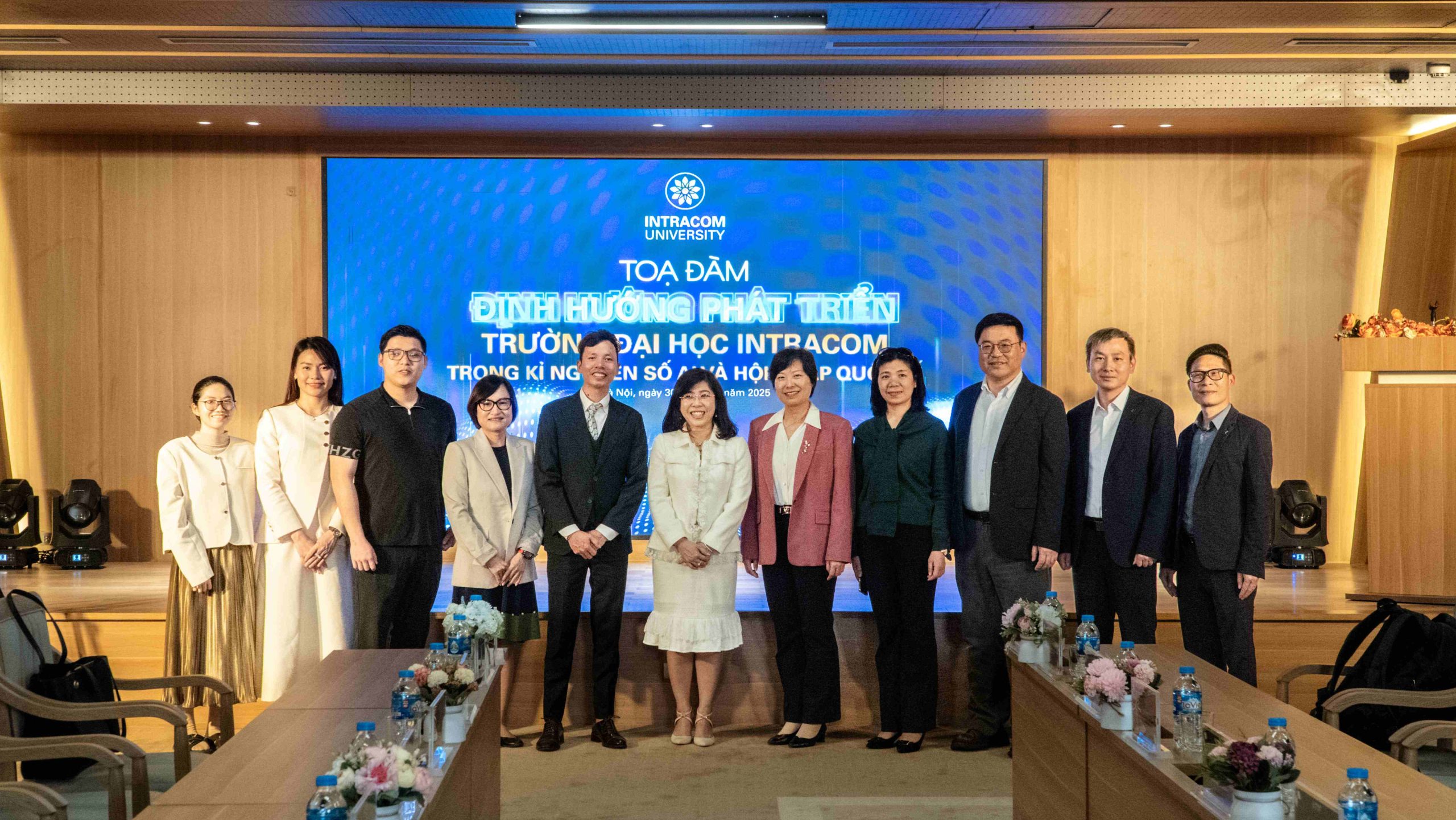 Chương trình khép lại trong không khí trang trọng và phấn khởi với hoạt động chụp ảnh lưu niệm giữa đại diện hai bên, qua đó không chỉ lưu giữ những khoảnh khắc ý nghĩa của buổi làm việc mà còn đánh dấu một cột mốc quan trọng trong quá trình thúc đẩy quan hệ hợp tác quốc tế của Trường Đại học Intracom. Đây được xem là bước tiến mới, thể hiện quyết tâm và định hướng chiến lược của Nhà trường trong việc mở rộng mạng lưới đối tác, nâng cao chất lượng đào tạo, tăng cường hội nhập quốc tế và tạo thêm nhiều cơ hội học tập, trải nghiệm cho sinh viên trong thời gian tới.