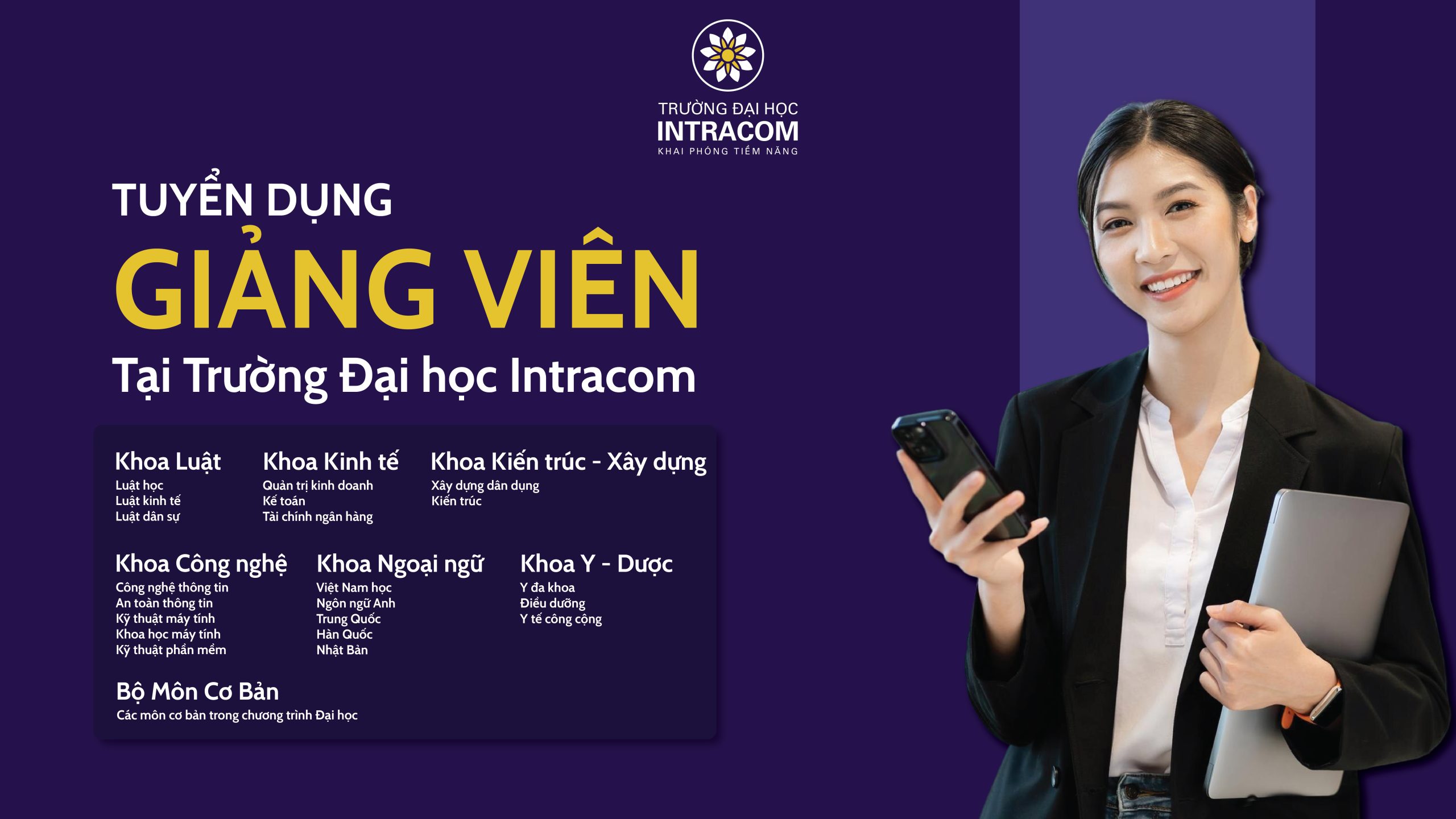 Với mong muốn nâng cao và đổi mới chất lượng đào tạo cho năm học 2025 – 2026, Trường Đại học Intracom thông báo tuyển dụng giảng viên các khối ngành Kinh tế, Công nghệ, Luật, Ngoại ngữ, Y Dược với thông tin như sau: