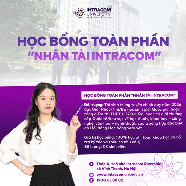 Với mong muốn tìm được các hạt giống nhân tài có tư chất tốt và ý chí nghị lực, Trường Đại học Intracom trong năm học 2026 – 2027 mang lại rất nhiều cơ hội cho các thí sinh với hơn 1000 suất học bổng có giá trị cao nhất lên tới 100% học phí toàn khóa.
